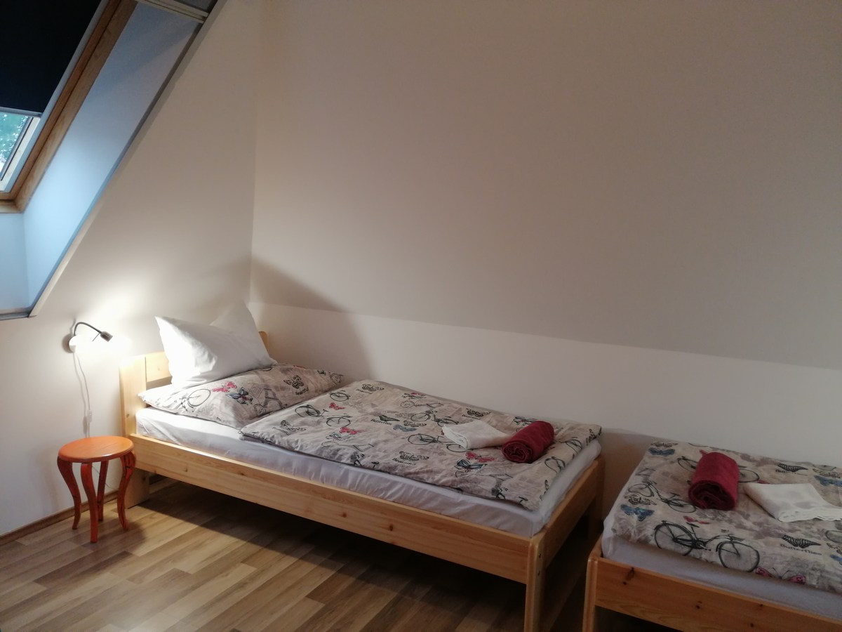 Tetőtér: előtér, 2 kétágyas hálószoba, tusoló/WC Egyik szobában babaágy