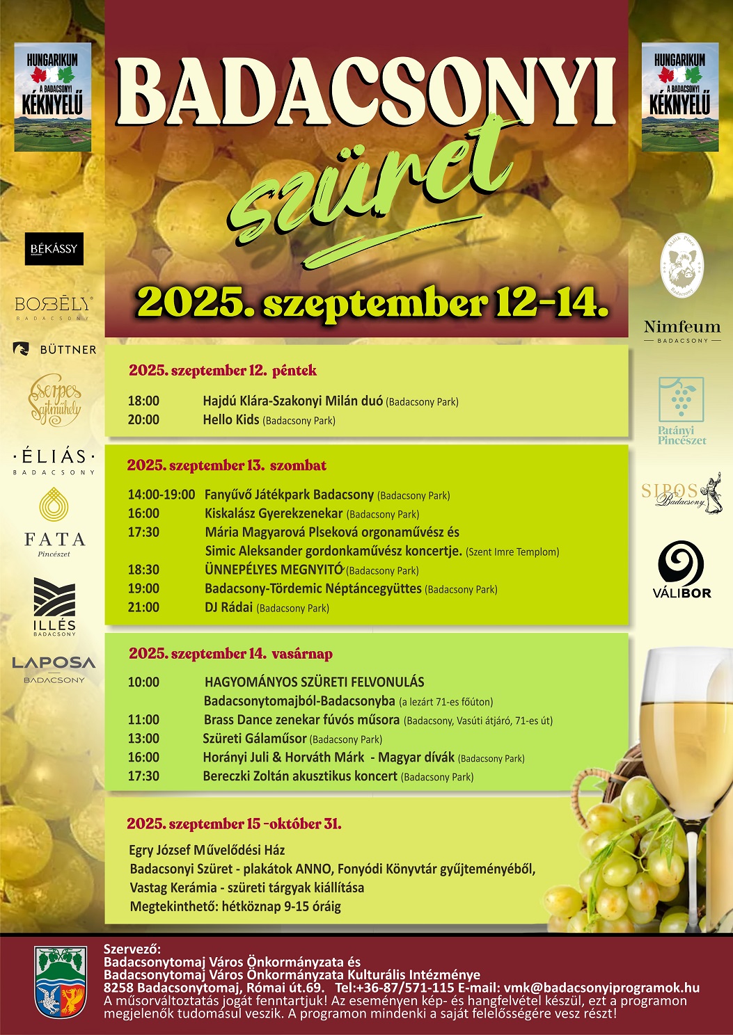 Sall Csaba, Badacsony, Park utca 53. 70/374-00-80.
