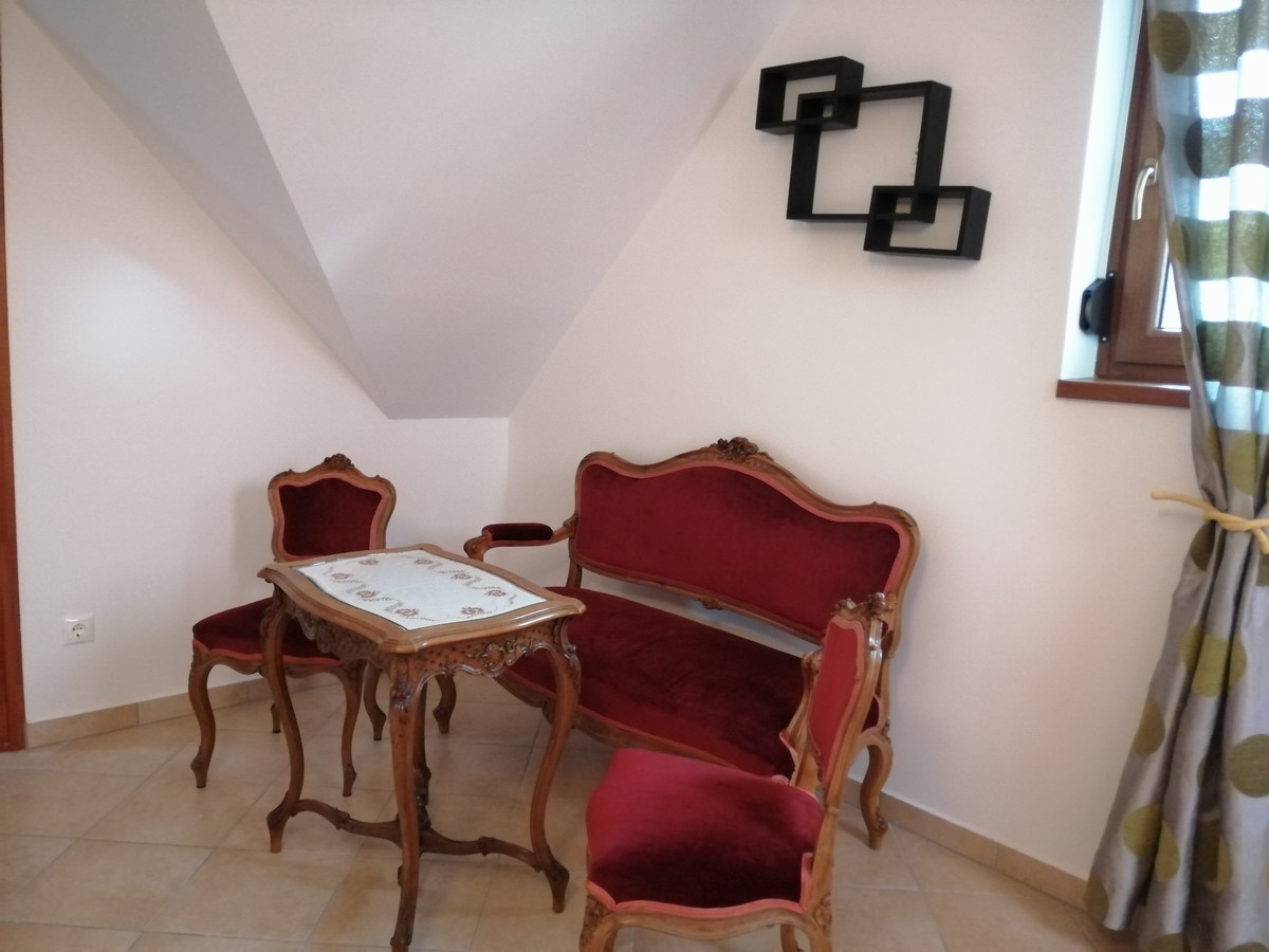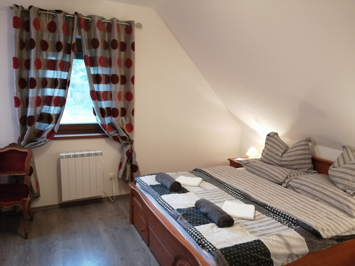 Tetőtér: előtér, 2 kétágyas hálószoba, tusoló/WC Egyik szobában babaágy