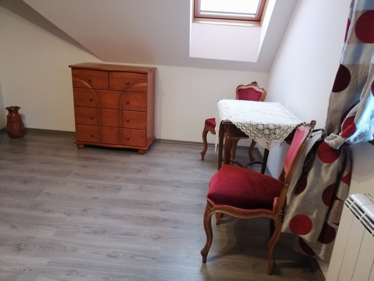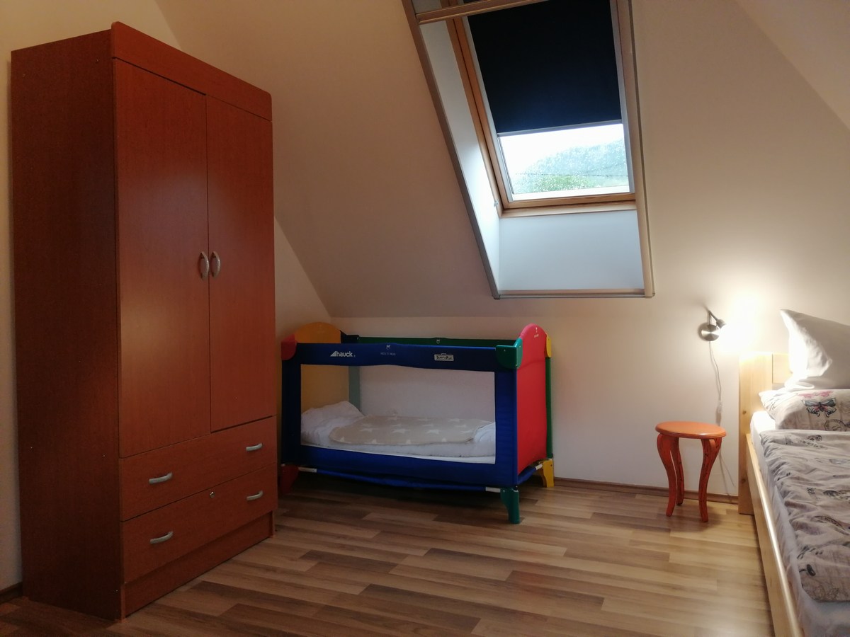 Tetőtér: előtér, 2 kétágyas hálószoba, tusoló/WC Egyik szobában babaágy